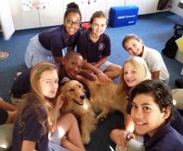 Genesis Assistance Dogs Inc. transforms the lives of people with disabilities through the training and placement of highly skilled assistance and facility dogs for children and adults. After meeting Jodi and Jeffrey Eagle, Board President of Genesis Assistance Dogs, Inc., Principal Virginia Devine saw the great potential and benefits that a facility dog could bring to Rosarian Academy. In May 2013, Ms. Devine became Jodi’s full-time caretaker and brings Jodi to school with her every day. In just a few short weeks Jodi began making a positive impact in the lives of the students and faculty.